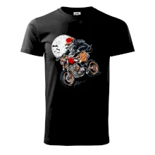 Kreslený vlk na motorce