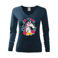 Tolerantnější vypasování dámského střihu, který je vhodný pro všechny typy postavy, ideální délka rukávů a konzervativní výstřih zakončený žebrováním, které skvěle drží tvar.