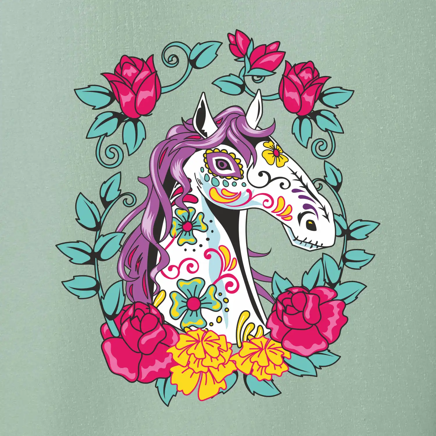 Kůň barevný s květinami