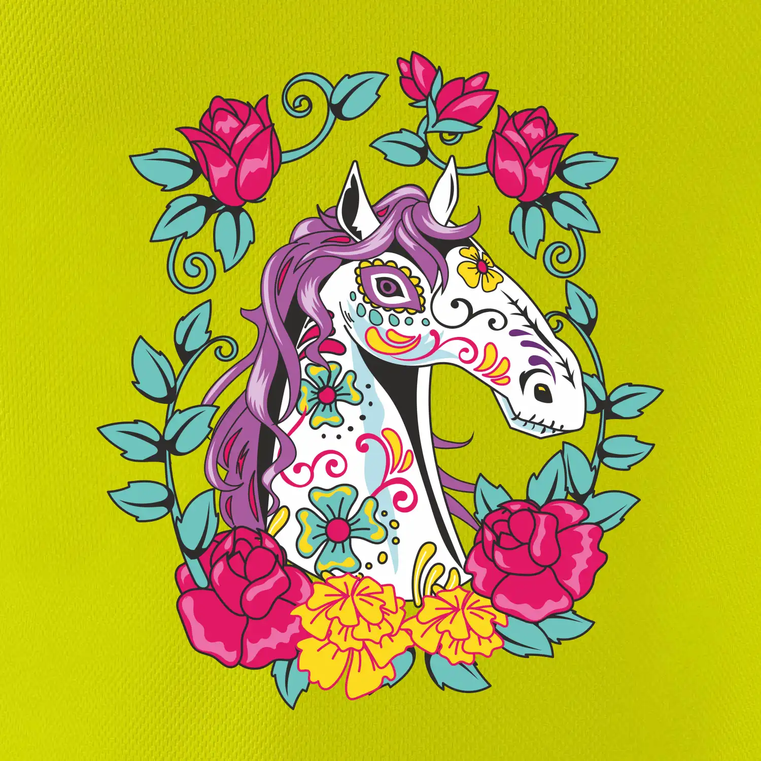 Kůň barevný s květinami