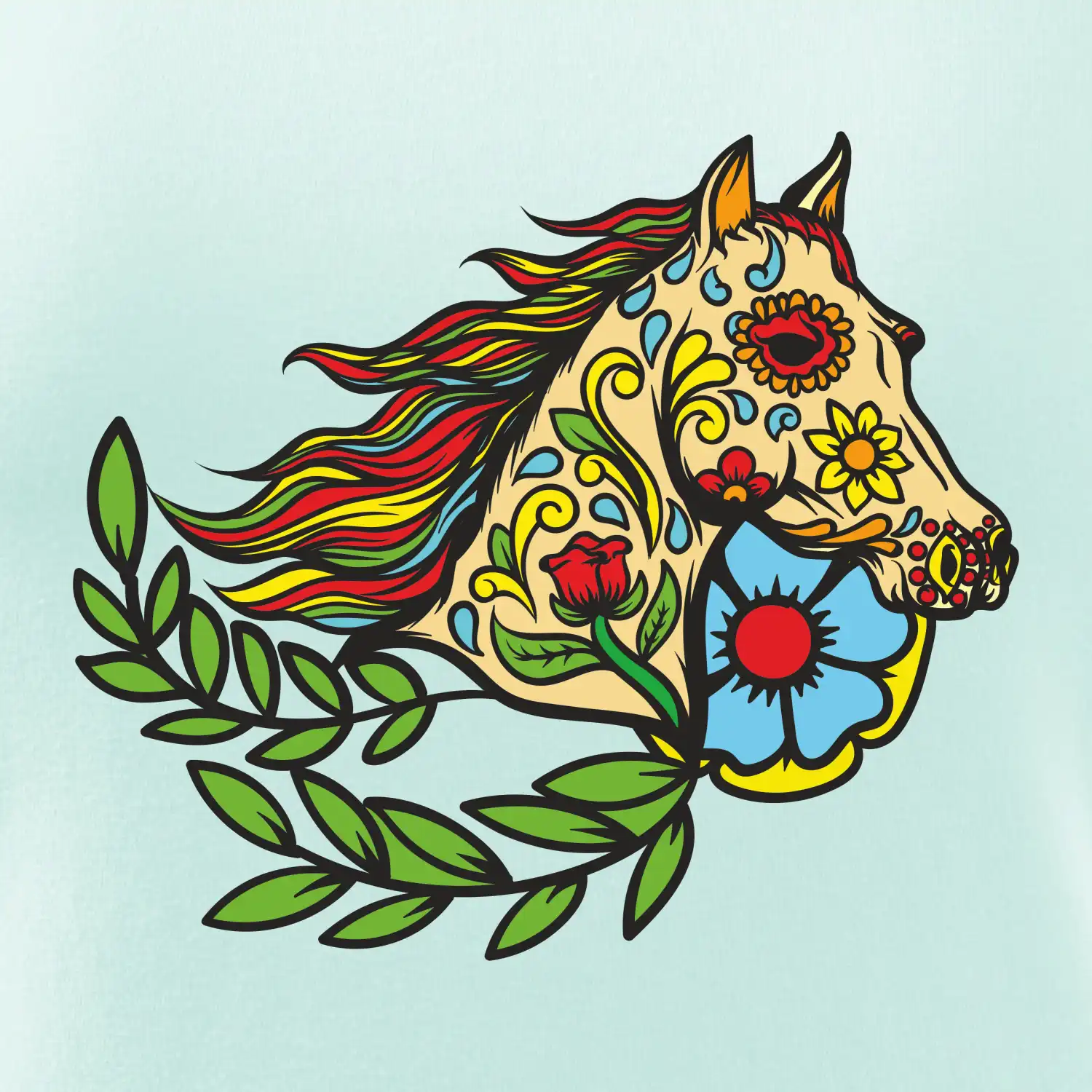 Kůň barevný s listy