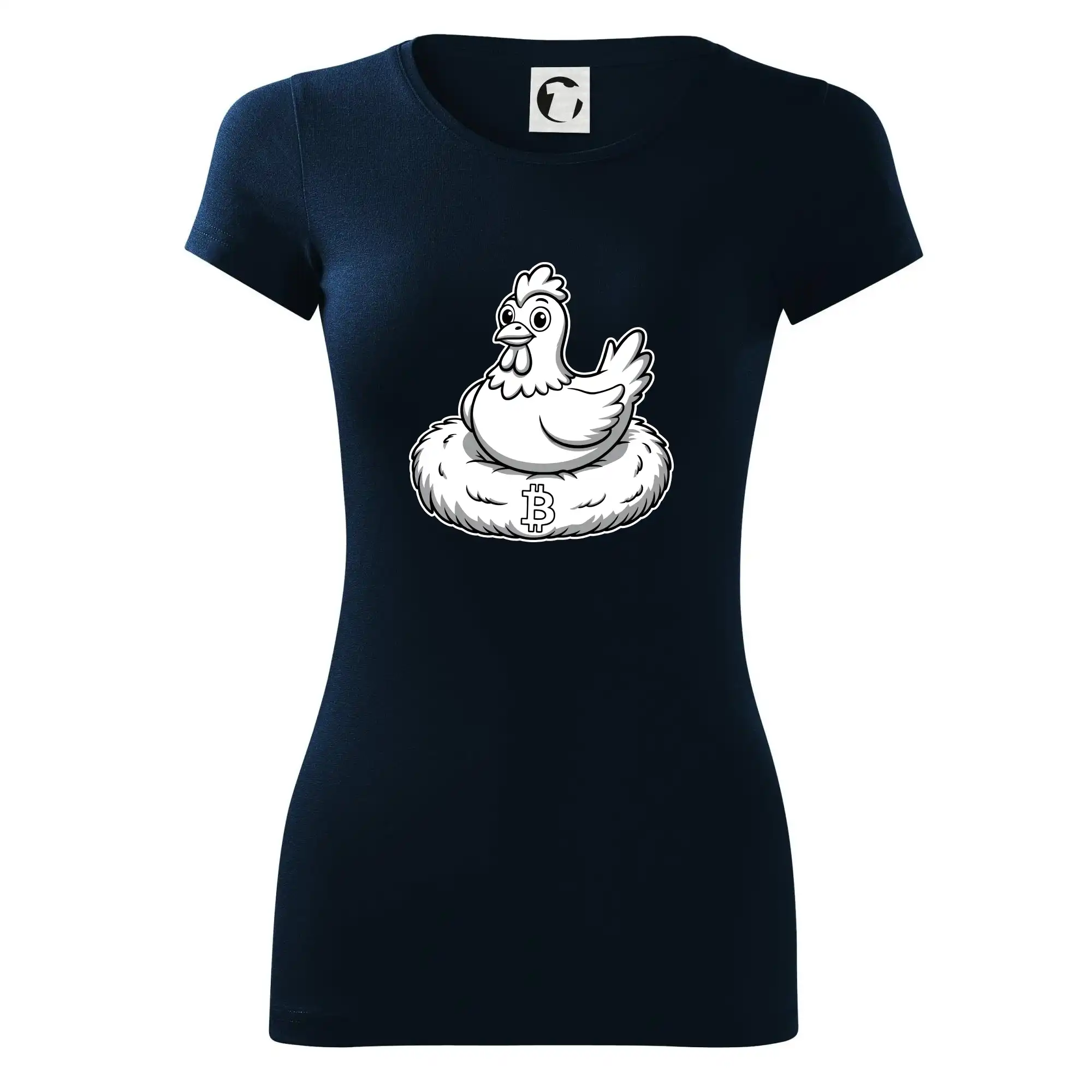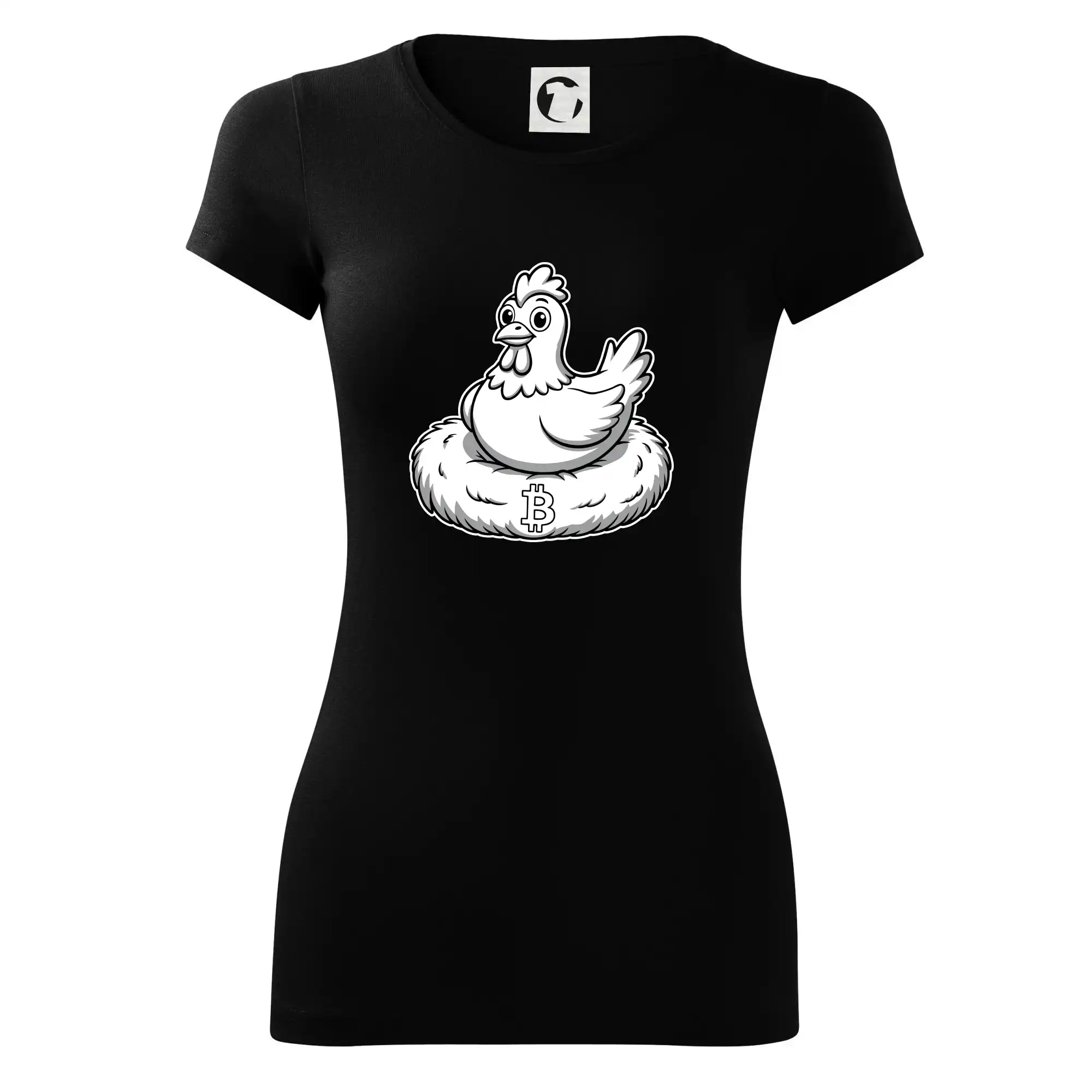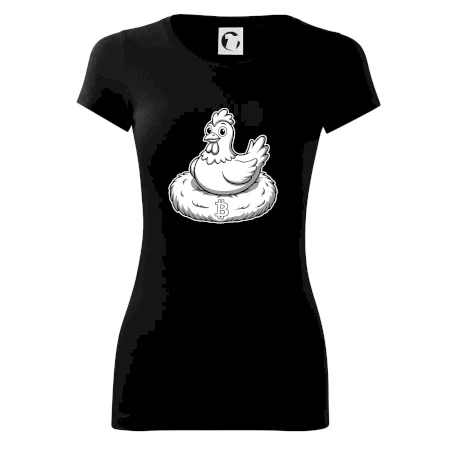 Kuře sedící na bitcoinovém hnízdě