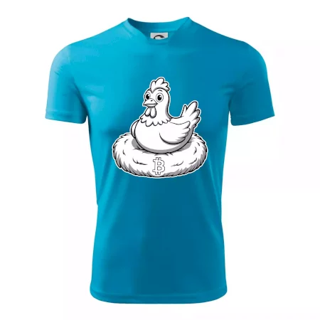 Kuře sedící na bitcoinovém hnízdě