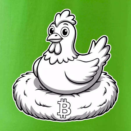 Kuře sedící na bitcoinovém hnízdě