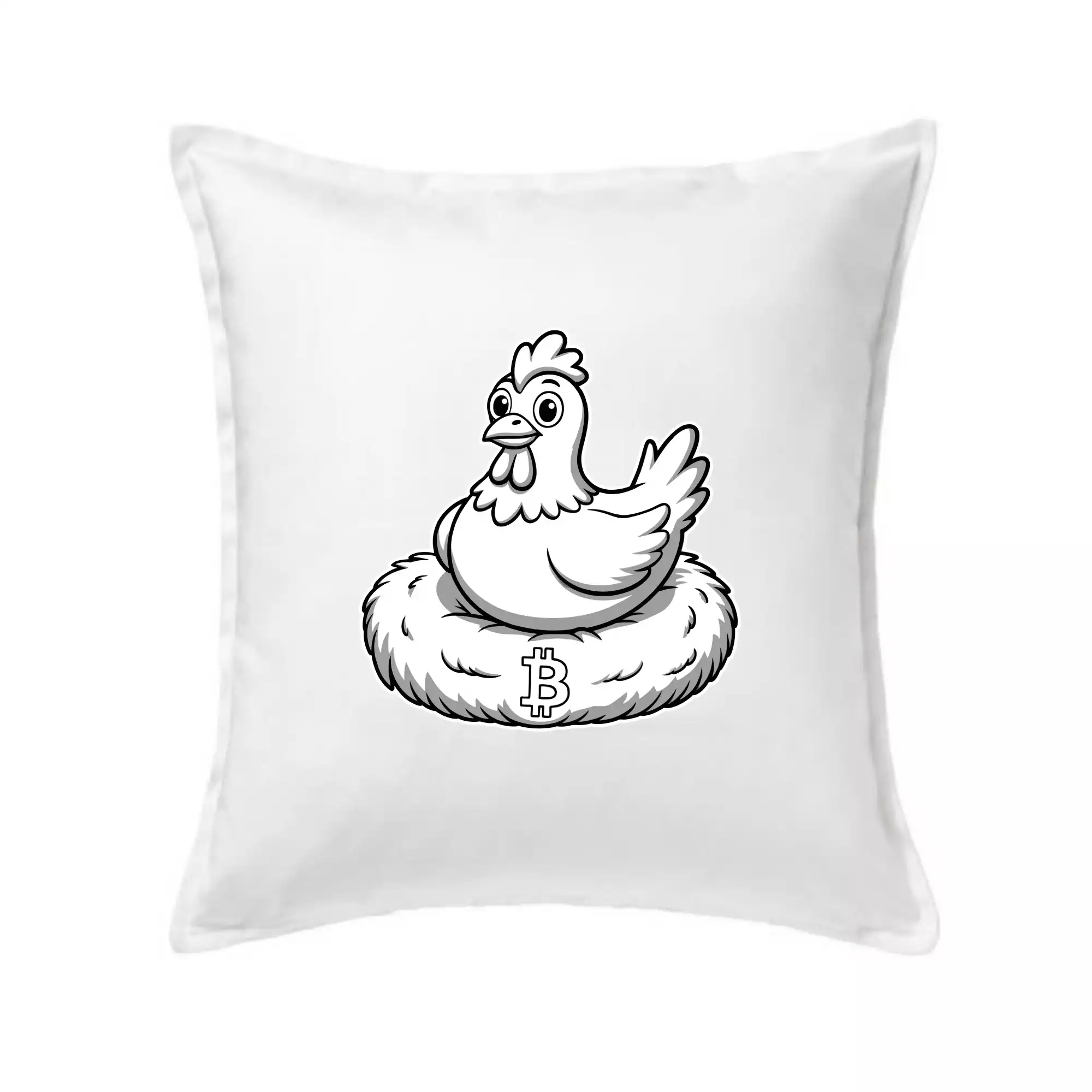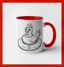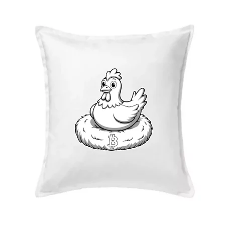 Kuře sedící na bitcoinovém hnízdě