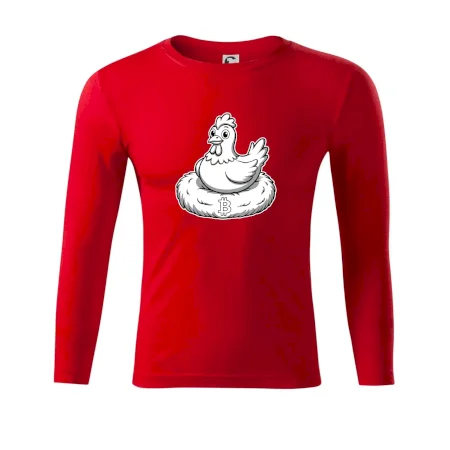 Kuře sedící na bitcoinovém hnízdě