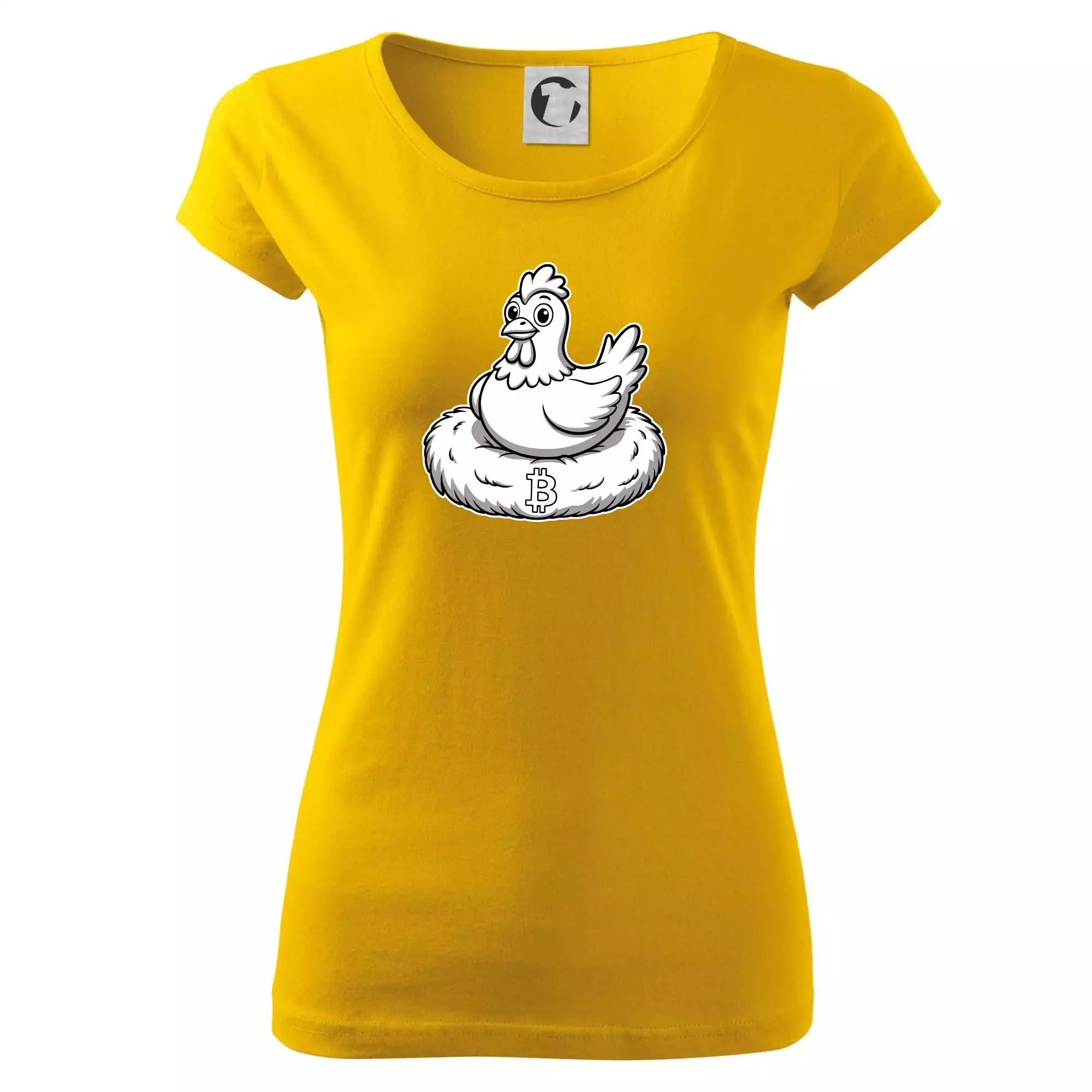 Kuře sedící na bitcoinovém hnízdě