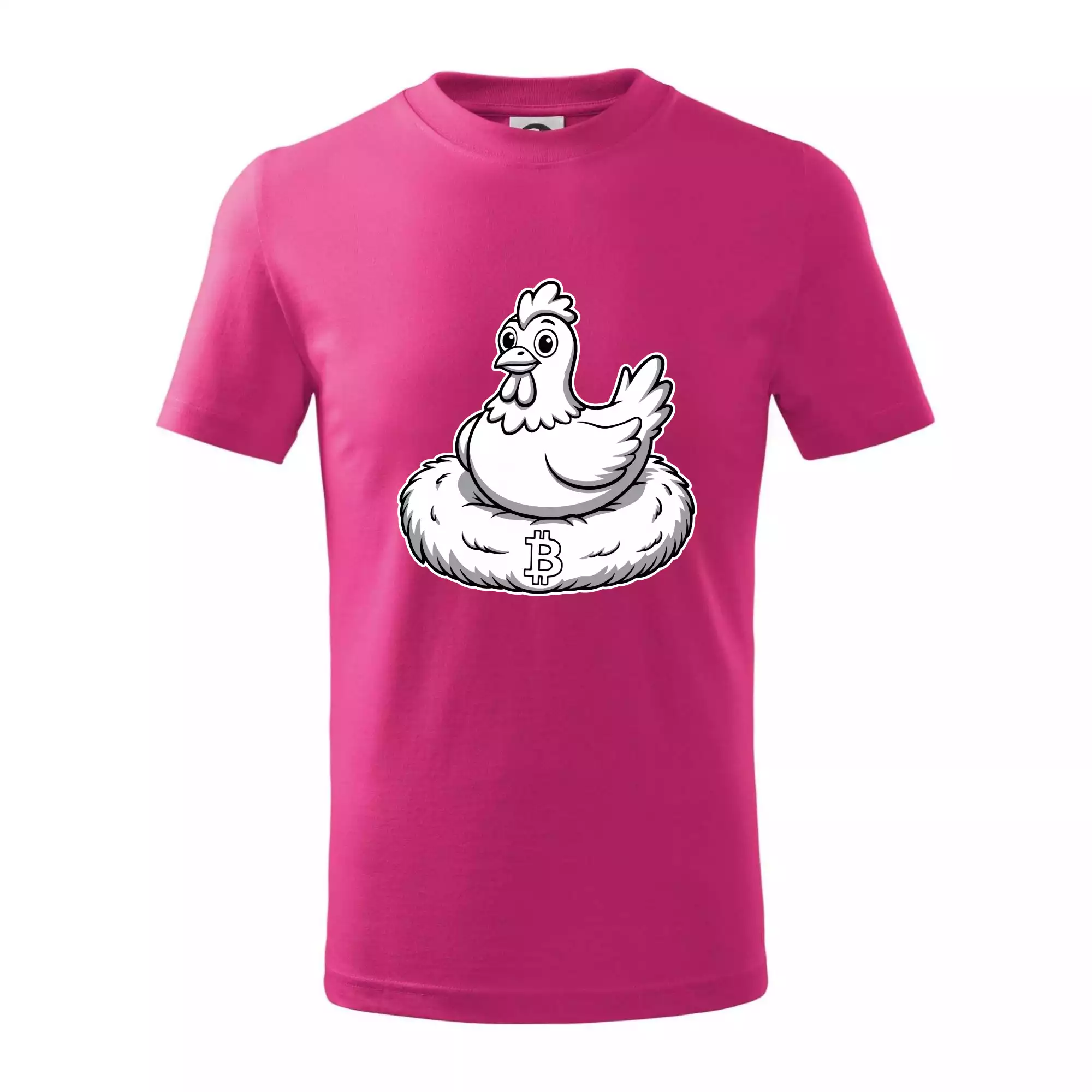 Kuře sedící na bitcoinovém hnízdě