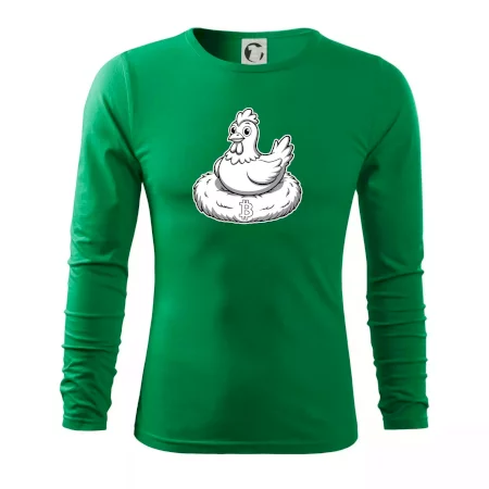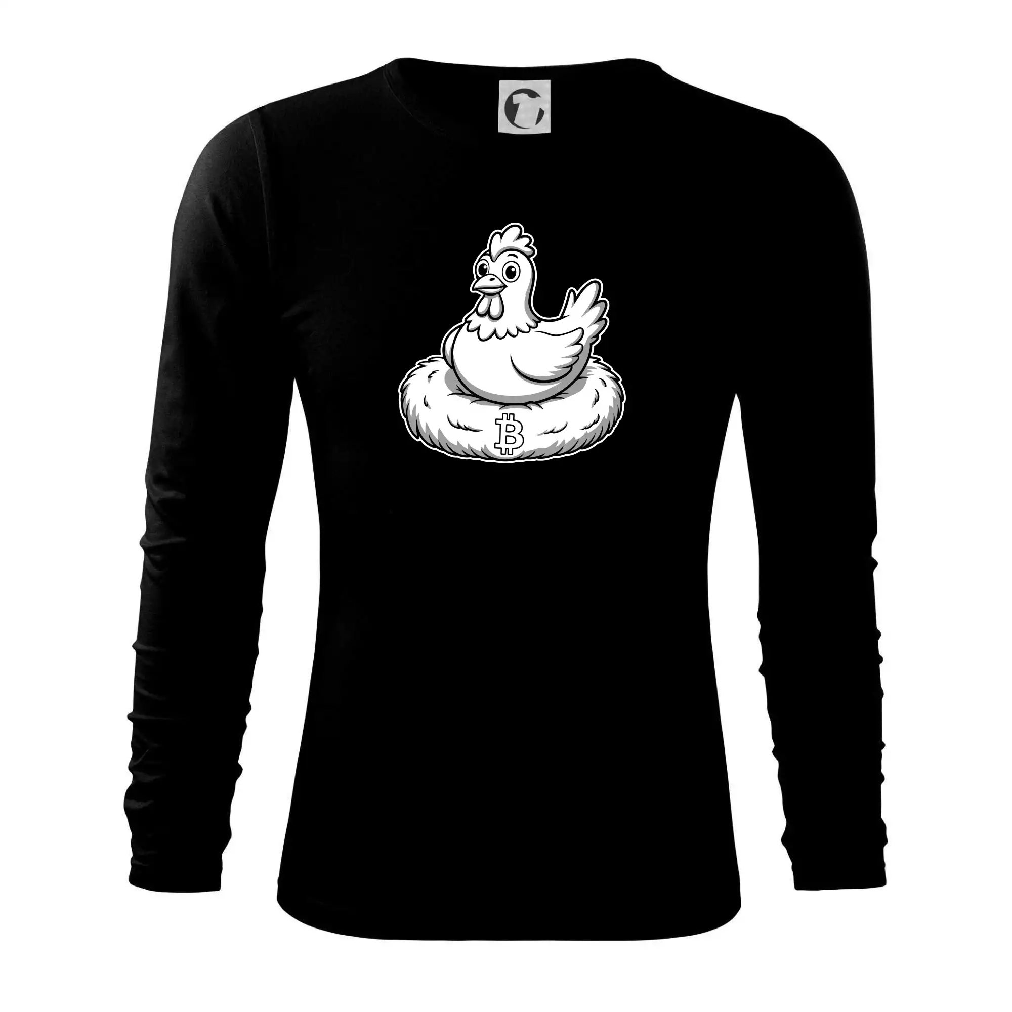 Kuře sedící na bitcoinovém hnízdě
