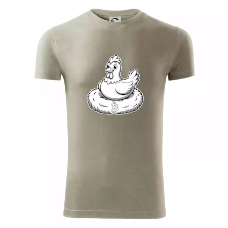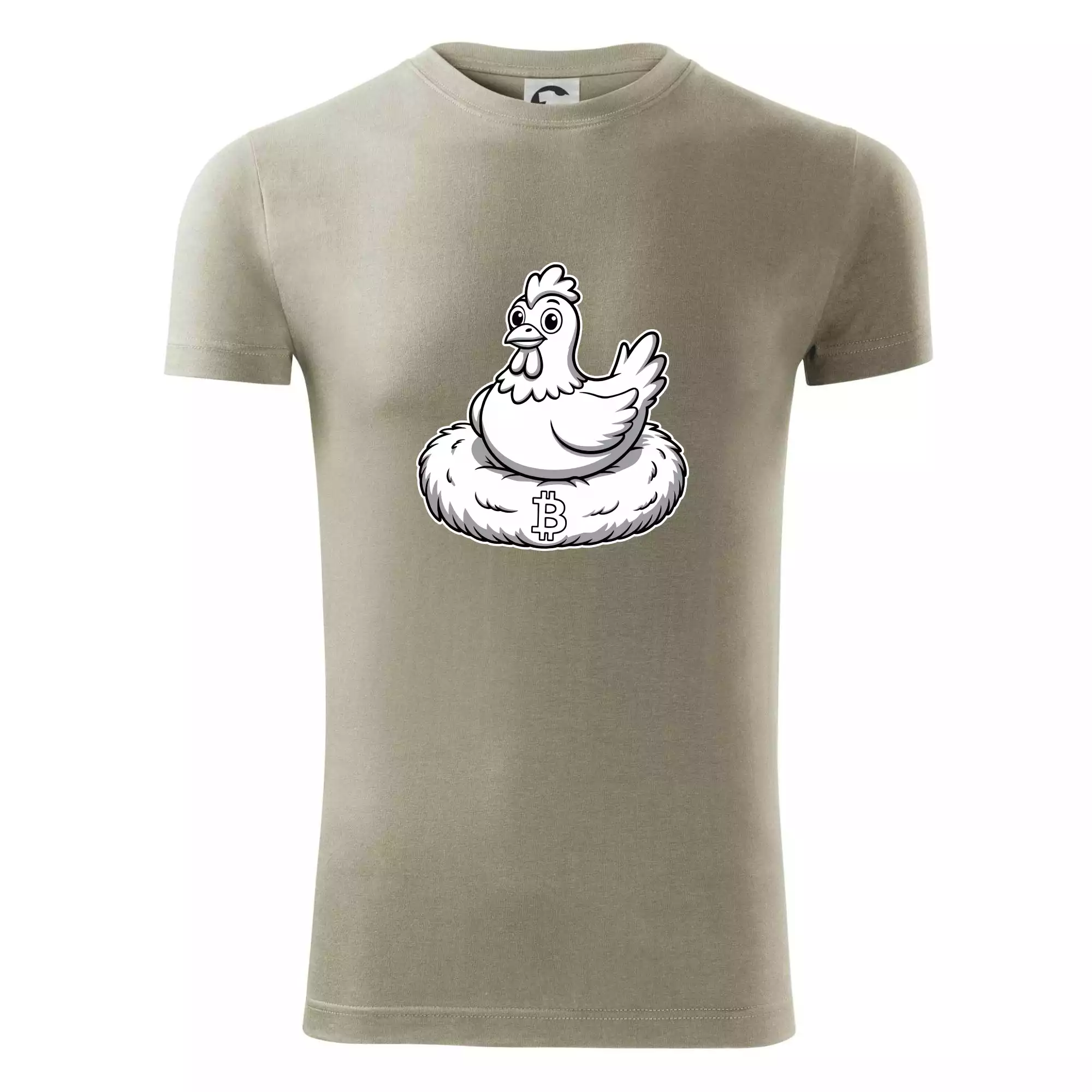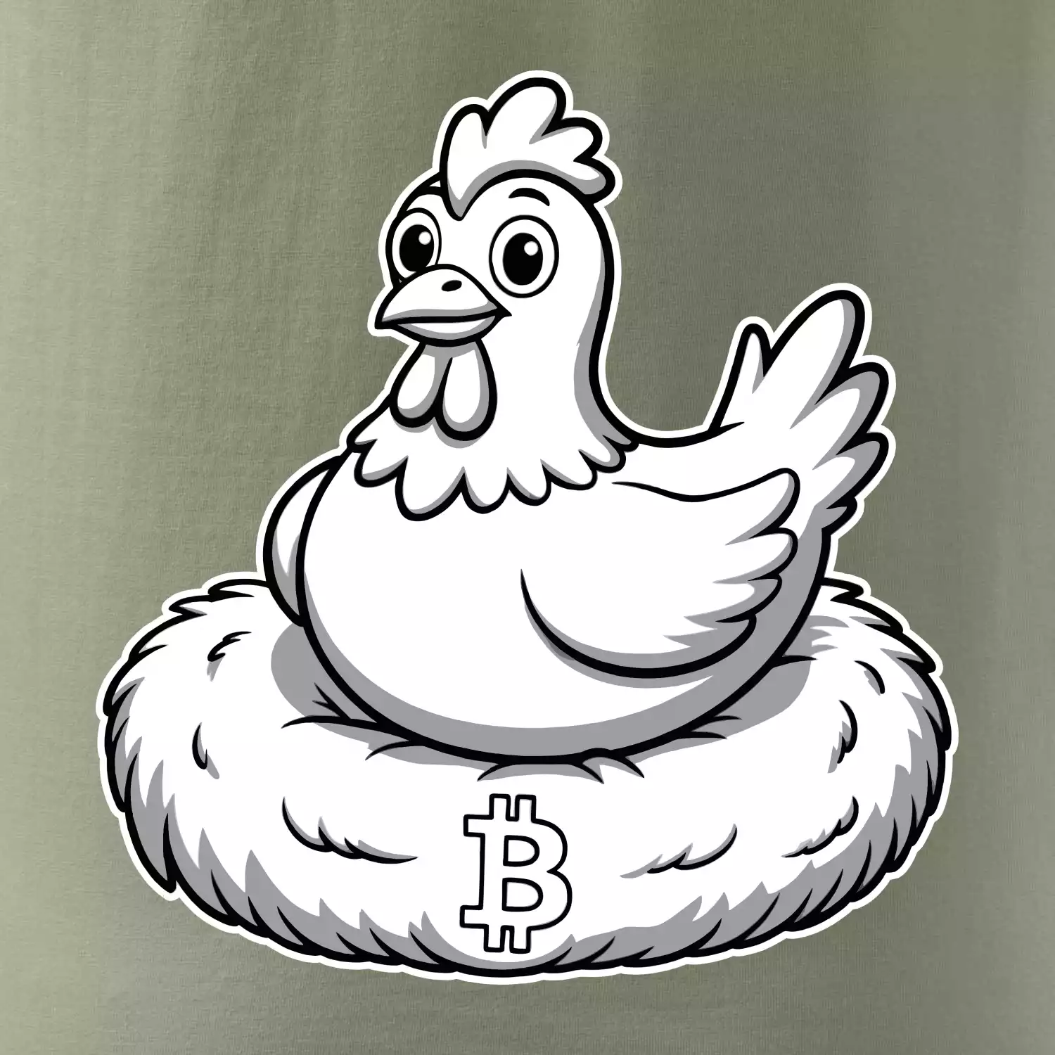 Kuře sedící na bitcoinovém hnízdě
