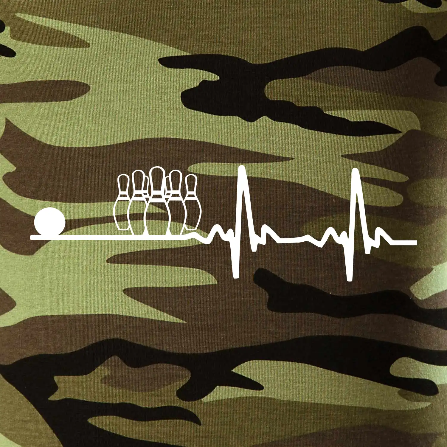 Tričko střední gramáže v barvách camouflage. Střih s bočními švy. Lem průkrčníku ze žebrového úpletu s přídavkem 5 % elastanu. Vnitřní část zadního průkrčníku začištěna páskou v barvě camouflage.
