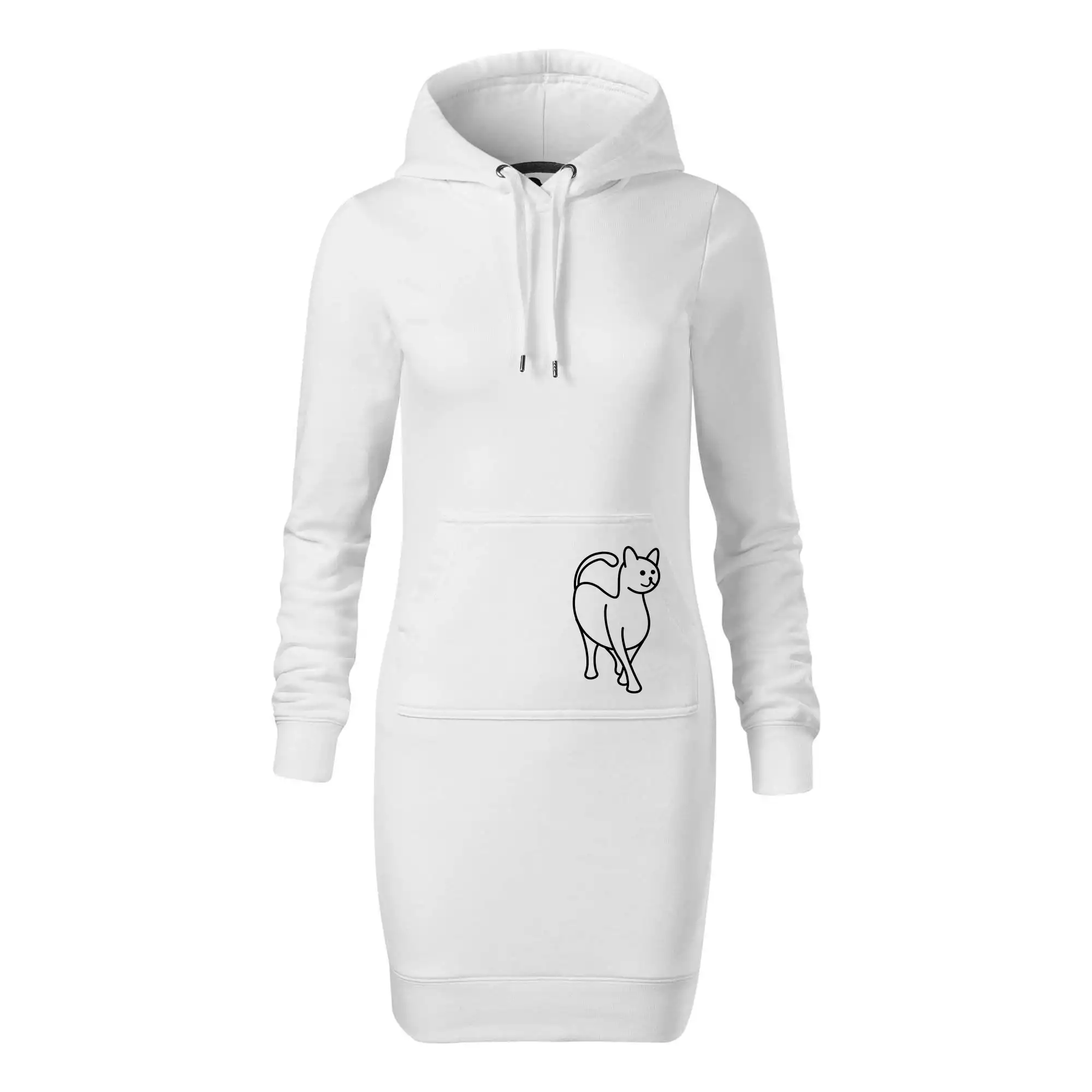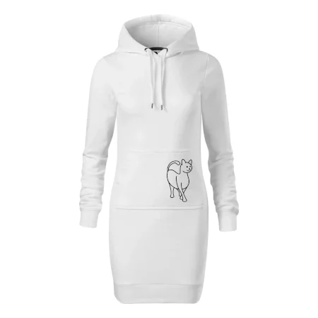 Dámské mikinové šaty MALFINI Snap 419 jsou ideální volbou pro ženy, které hledají pohodlný a stylový kousek pro volný čas nebo každodenní nošení. Lehce vypasovaný střih s bočními švy podtrhuje ženskou siluetu, zatímco kapuce s podšívkou a stahovací šňůrkou dodává ležérní vzhled. Šaty mají délku nad kolena a jsou vybaveny nakládanou kapsou ve stylu „klokanky“. Materiál je měkký a příjemný na dotek díky směsi bavlny a polyesteru s nepočesanou vnitřní stranou.