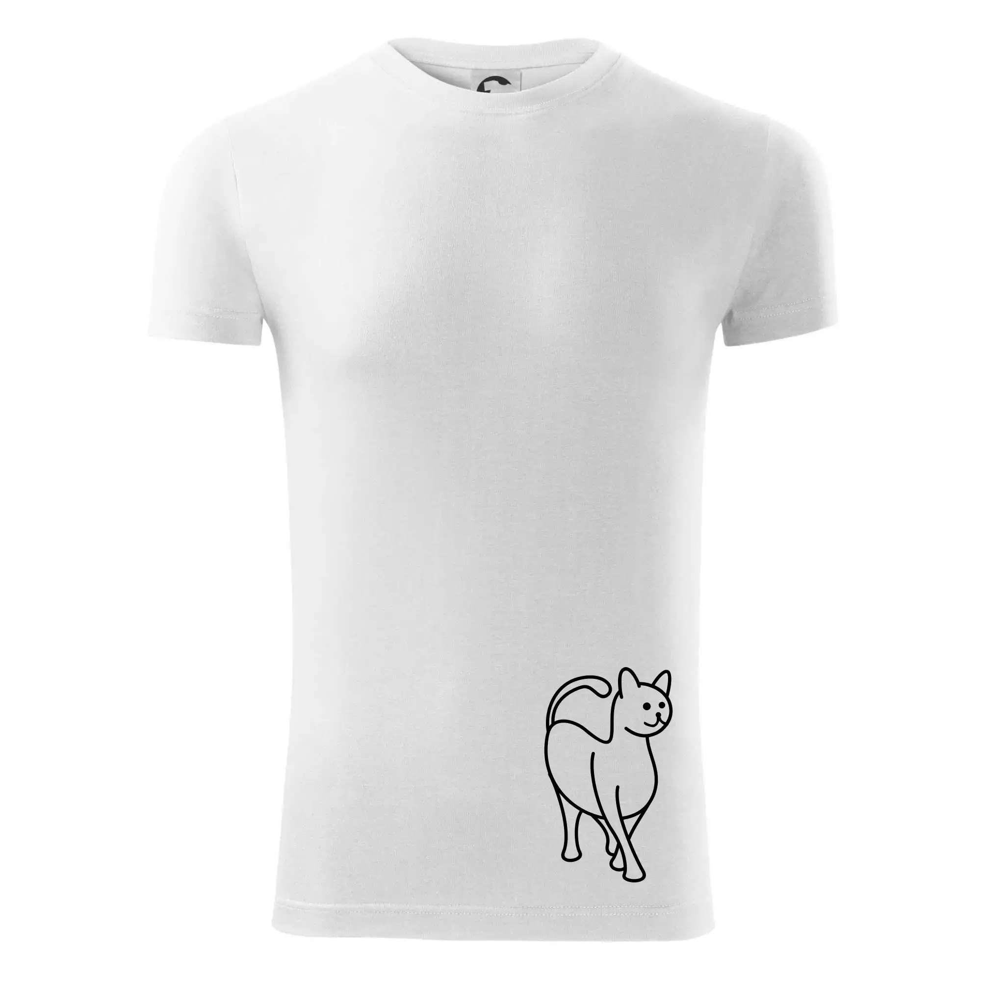 Pánské tričko s krátkým rukávem vyšší gramáže. Módní, přiléhavý střih s bočními švy. Úzký lem průkrčníku ze žebrového úpletu s přídavkem 5 % elastanu. Vnitřní část zadního průkrčníku začištěna páskou. Zpevněný ramenní šev.