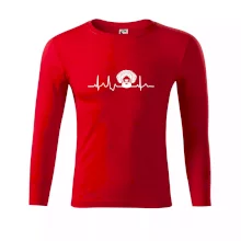 Kvalitní přiléhavé pánské triko s dlouhým rukávem z hladkého úpletu. Módní úzký lem u krku v barvě trika.
