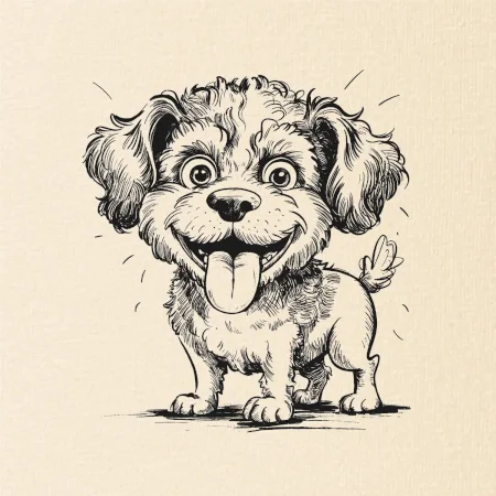 Lagotto romagnolo karikatura vypláznutý jazyk