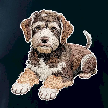 Lagotto romagnolo ležicí vyšívaný na prsu