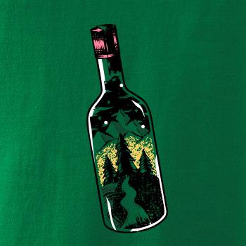 Láhev ve které je celý svět. Triko s lahví, ve které je les a hory je vhodný dárek pro cestovatele. Každý kdo má rád cestování a turistika je jeho oblíbená činnost, by si měl tohle triko pořídit. Triko pro kempaře by si měl pořídit každý správný lesák.