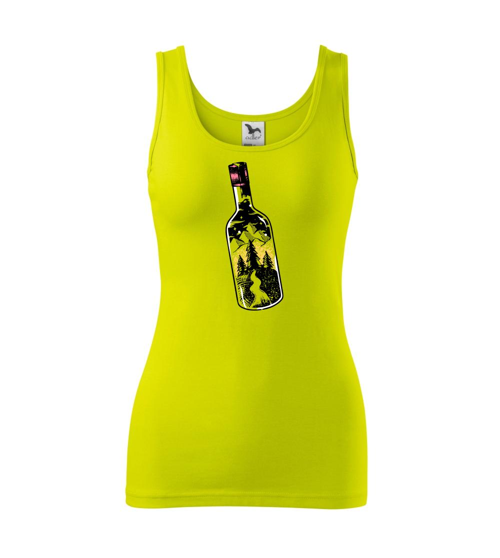 Láhev ve které je celý svět. Triko s lahví, ve které je les a hory je vhodný dárek pro cestovatele. Každý kdo má rád cestování a turistika je jeho oblíbená činnost, by si měl tohle triko pořídit. Triko pro kempaře by si měl pořídit každý správný lesák.