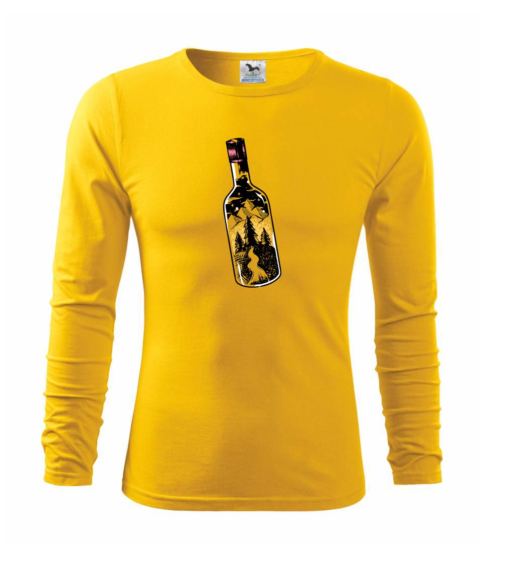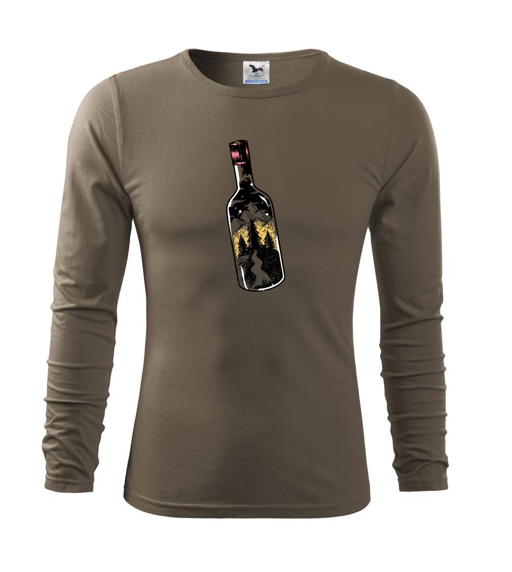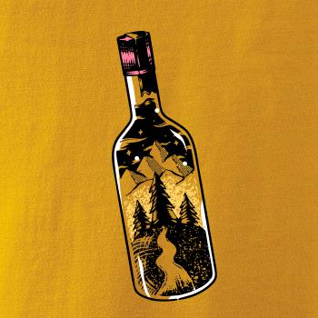Láhev ve které je celý svět. Triko s lahví, ve které je les a hory je vhodný dárek pro cestovatele. Každý kdo má rád cestování a turistika je jeho oblíbená činnost, by si měl tohle triko pořídit. Triko pro kempaře by si měl pořídit každý správný lesák.