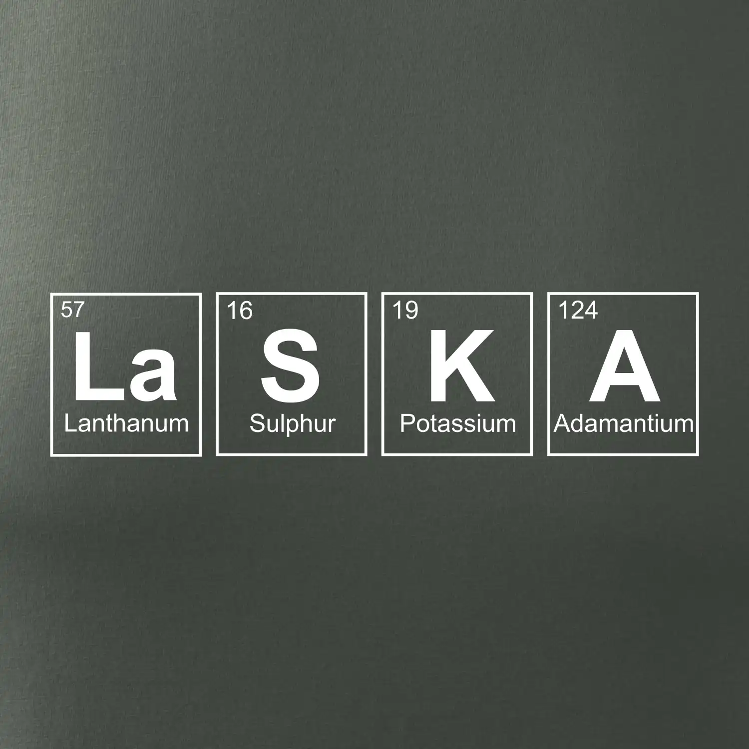 Triko pro někoho, kdo má rád chemii a taky umí mít pořádně rád. Z prvků periodické tabulky lze poskládat mnoho. Proč si tedy nevybrat ten správný prvek a na triko si nenatisknout třeba nápis LaSKA. Trička a mikiny pro všechny zaláskované páry a sluníčkáře ve vtipné formě periodické tabulky!