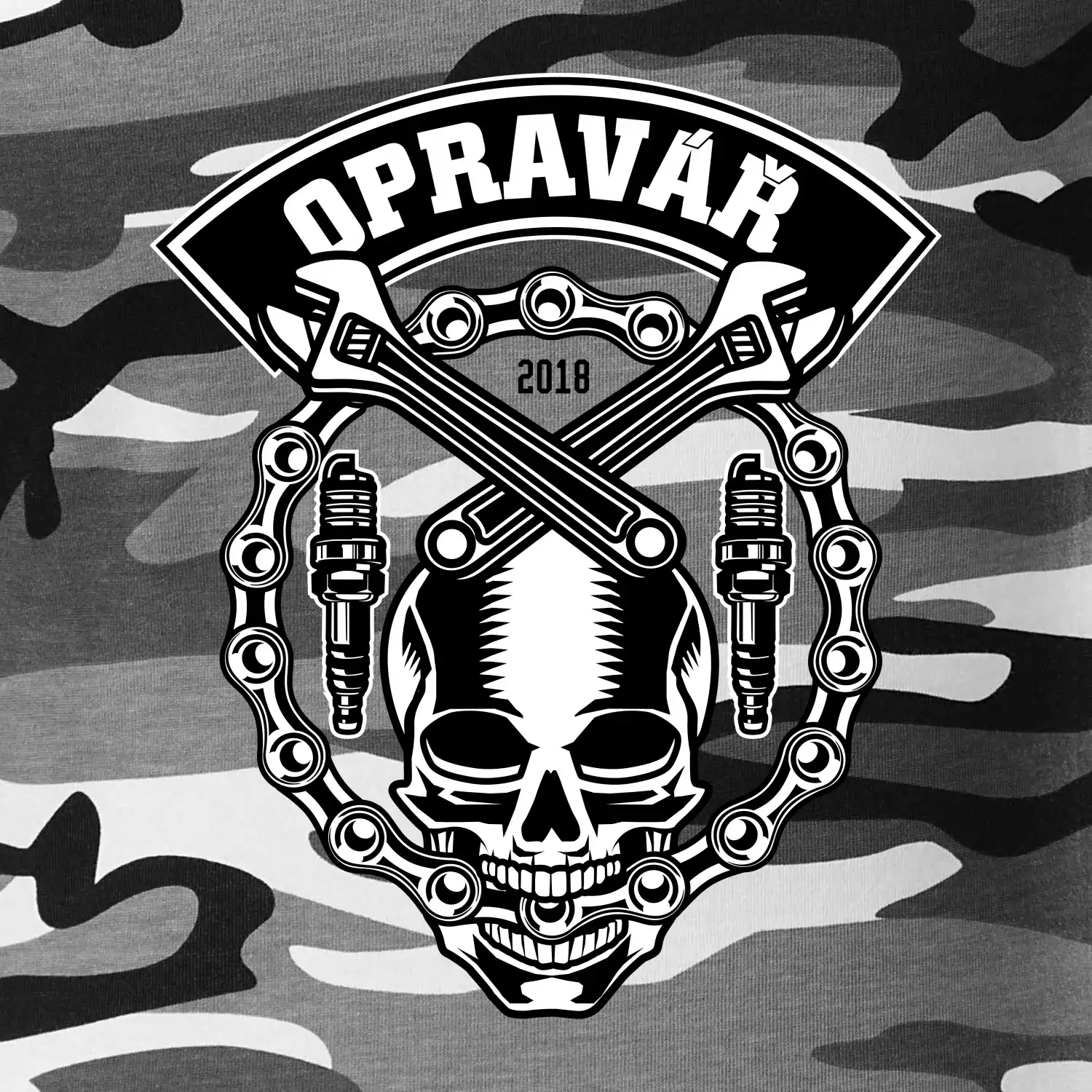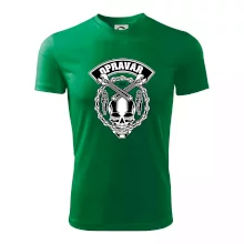 Tričko střední gramáže v barvách camouflage. Střih s bočními švy. Lem průkrčníku ze žebrového úpletu s přídavkem 5 % elastanu. Vnitřní část zadního průkrčníku začištěna páskou v barvě camouflage.