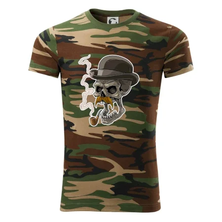 Tričko střední gramáže v barvách camouflage. Střih s bočními švy. Lem průkrčníku ze žebrového úpletu s přídavkem 5 % elastanu. Vnitřní část zadního průkrčníku začištěna páskou v barvě camouflage.