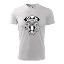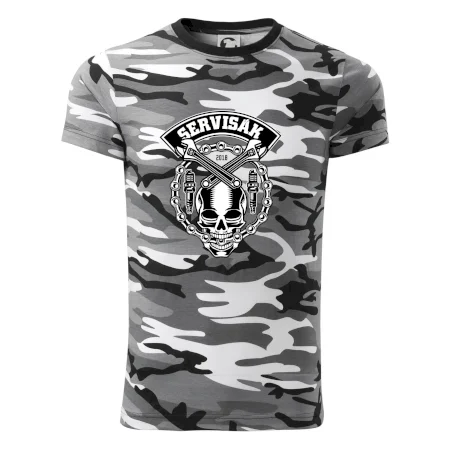 Tričko střední gramáže v barvách camouflage. Střih s bočními švy. Lem průkrčníku ze žebrového úpletu s přídavkem 5 % elastanu. Vnitřní část zadního průkrčníku začištěna páskou v barvě camouflage.