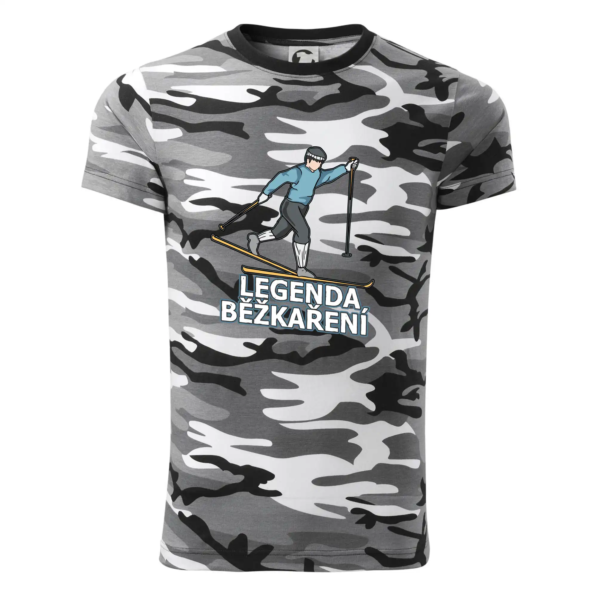 Tričko střední gramáže v barvách camouflage. Střih s bočními švy. Lem průkrčníku ze žebrového úpletu s přídavkem 5 % elastanu. Vnitřní část zadního průkrčníku začištěna páskou v barvě camouflage.