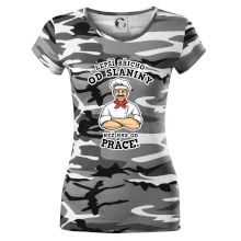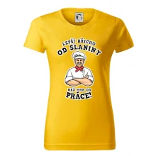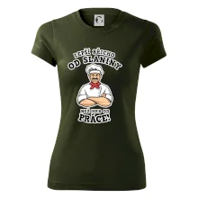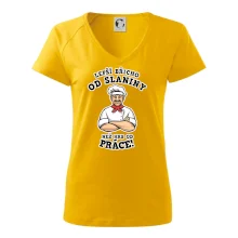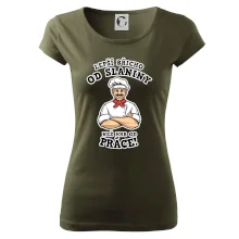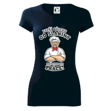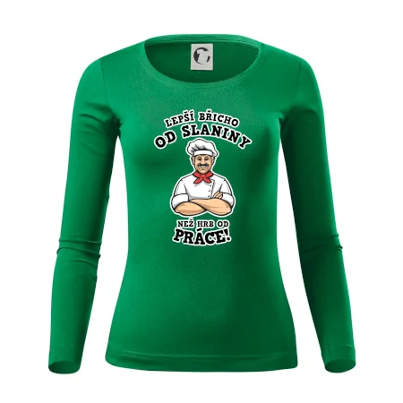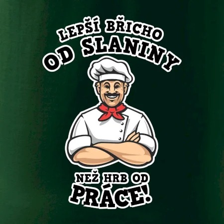 Dobře se najíst je základ, pak i ta práce jde dobře od ruky. Triko pro kuchaře, na kterém kuchař a nápis "Lepší triko od slaniny, než hrb od práce!", je vhodný dárek pro kuchaře. Kuchařské triko potěší každého kuchaře, který miluje vaření.