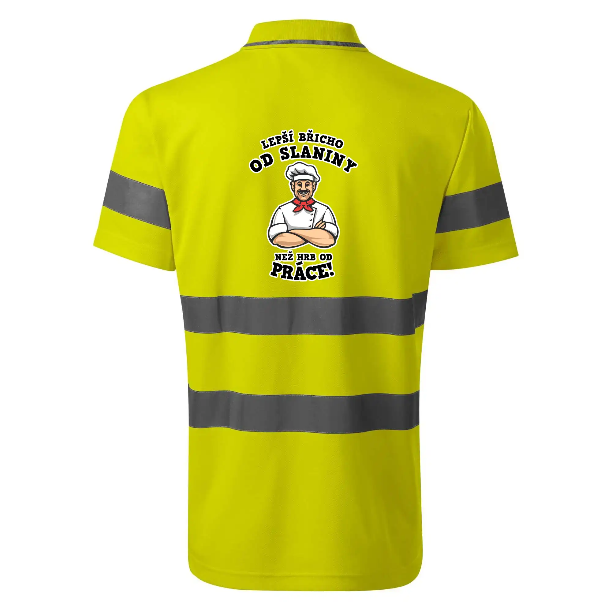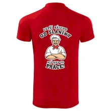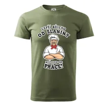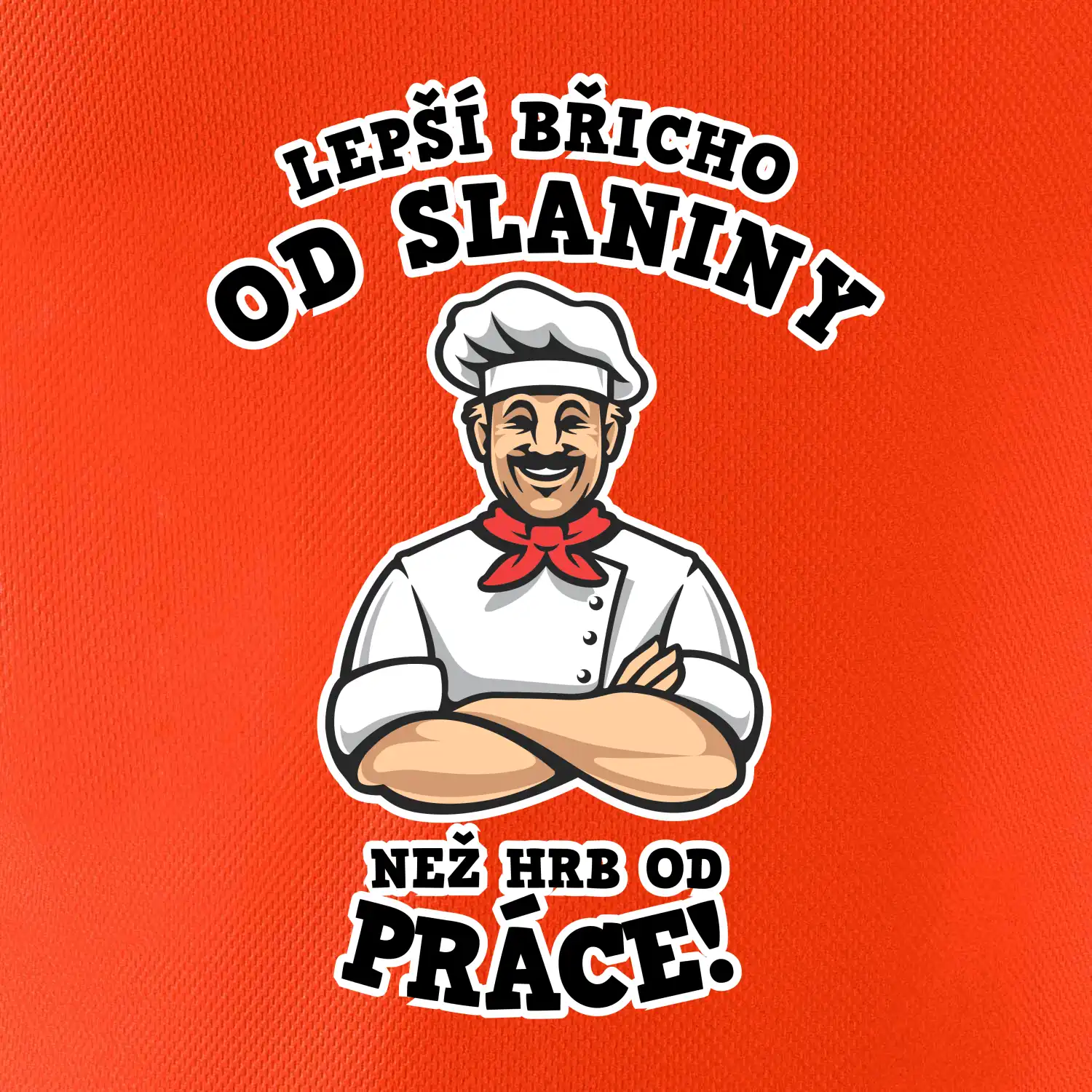 Dobře se najíst je základ, pak i ta práce jde dobře od ruky. Triko pro kuchaře, na kterém kuchař a nápis "Lepší triko od slaniny, než hrb od práce!", je vhodný dárek pro kuchaře. Kuchařské triko potěší každého kuchaře, který miluje vaření.