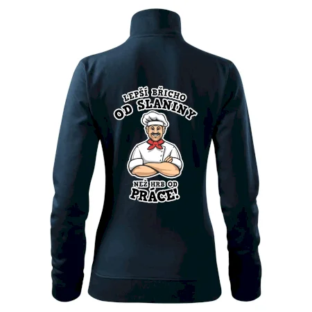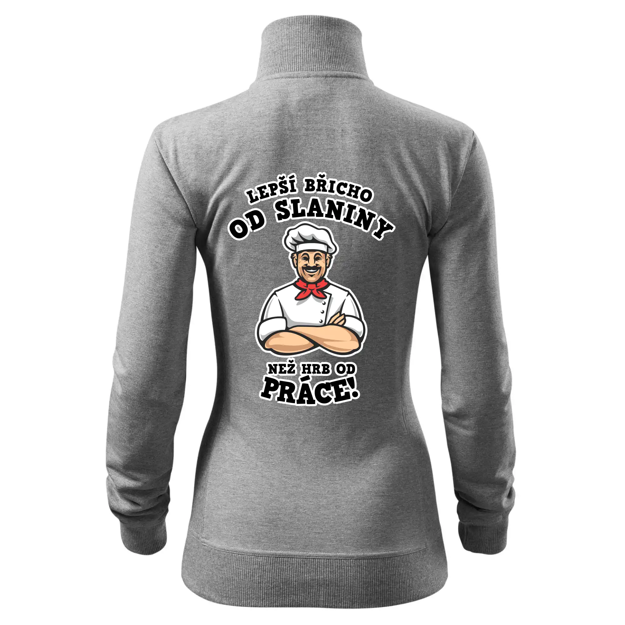 Dobře se najíst je základ, pak i ta práce jde dobře od ruky. Triko pro kuchaře, na kterém kuchař a nápis "Lepší triko od slaniny, než hrb od práce!", je vhodný dárek pro kuchaře. Kuchařské triko potěší každého kuchaře, který miluje vaření.