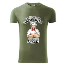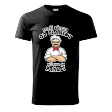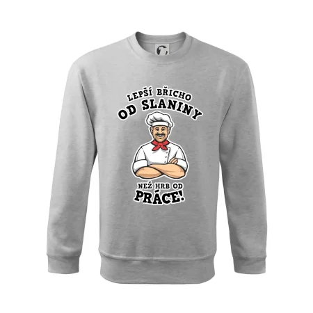 Dobře se najíst je základ, pak i ta práce jde dobře od ruky. Triko pro kuchaře, na kterém kuchař a nápis "Lepší triko od slaniny, než hrb od práce!", je vhodný dárek pro kuchaře. Kuchařské triko potěší každého kuchaře, který miluje vaření.
