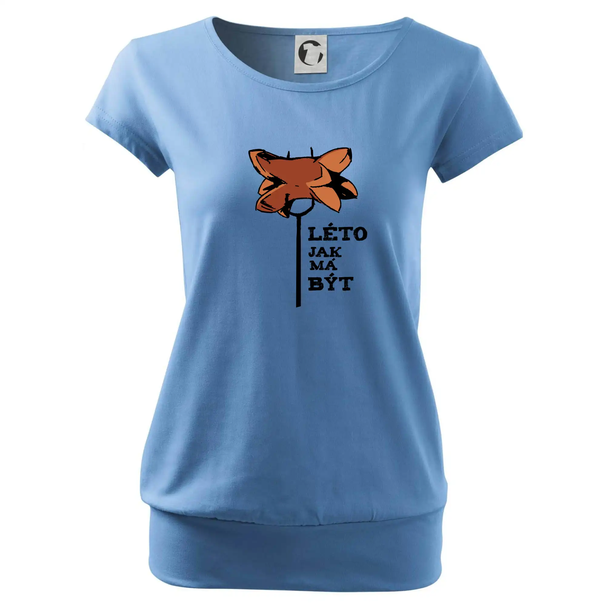 Trendové dámské triko s velmi krátkým rukávem, volnějšího střihu, v dolním kraji všité do širokého lemu. Kulatý průkrčník s úzkým lemem ze shodného materiálu.
