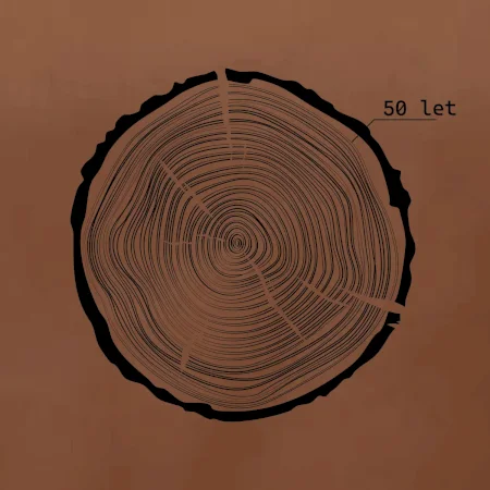 Nadčasový motiv letokruhů – decentní, ale originální grafika pro každého, kdo slaví padesátku