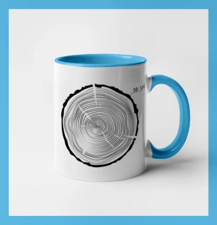 Nadčasový motiv letokruhů – decentní, ale originální grafika pro každého, kdo slaví padesátku