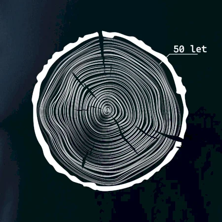 Nadčasový motiv letokruhů – decentní, ale originální grafika pro každého, kdo slaví padesátku