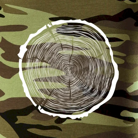 Tričko střední gramáže v barvách camouflage. Střih s bočními švy. Lem průkrčníku ze žebrového úpletu s přídavkem 5 % elastanu. Vnitřní část zadního průkrčníku začištěna páskou v barvě camouflage.