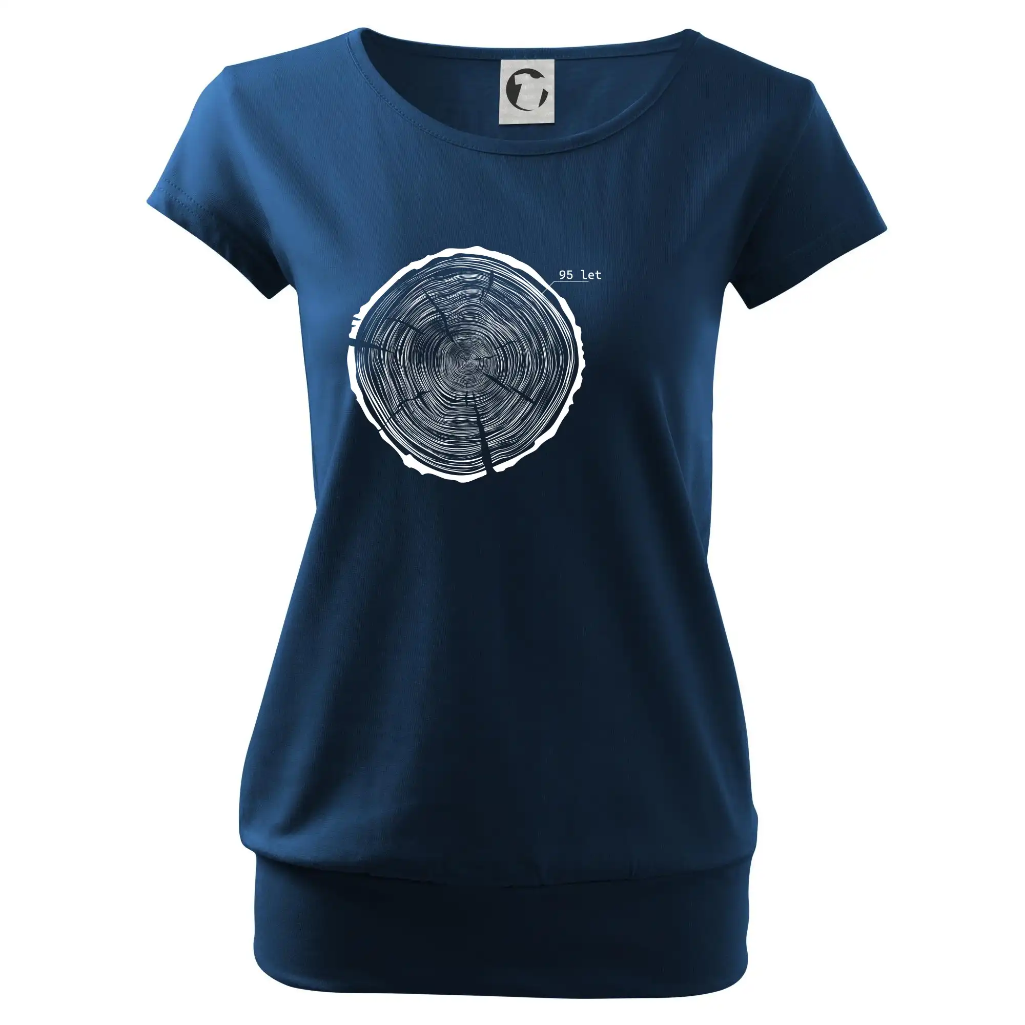 Trendové dámské triko s velmi krátkým rukávem, volnějšího střihu, v dolním kraji všité do širokého lemu. Kulatý průkrčník s úzkým lemem ze shodného materiálu.