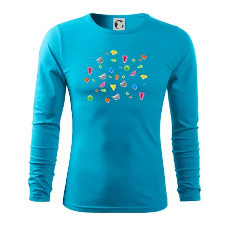 Tiko pro horolezce, horolezkyni nebo i horolezčátko. Tričko s motivem chytů a úchytů, pokud máš ve svém okolí někoho, kdo rád leze na umělé stěny, překonává výšky a boulderinguje.