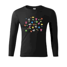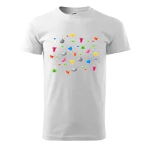 Tiko pro horolezce, horolezkyni nebo i horolezčátko. Tričko s motivem chytů a úchytů, pokud máš ve svém okolí někoho, kdo rád leze na umělé stěny, překonává výšky a boulderinguje.