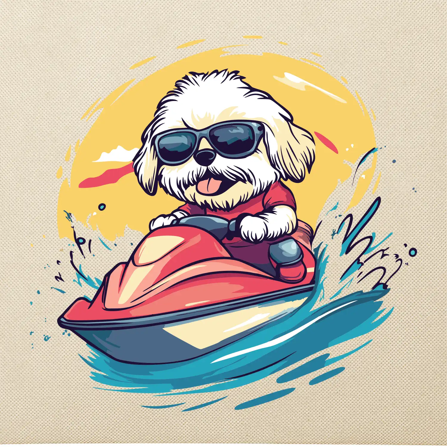 Lhasa Apso na vodním skútru