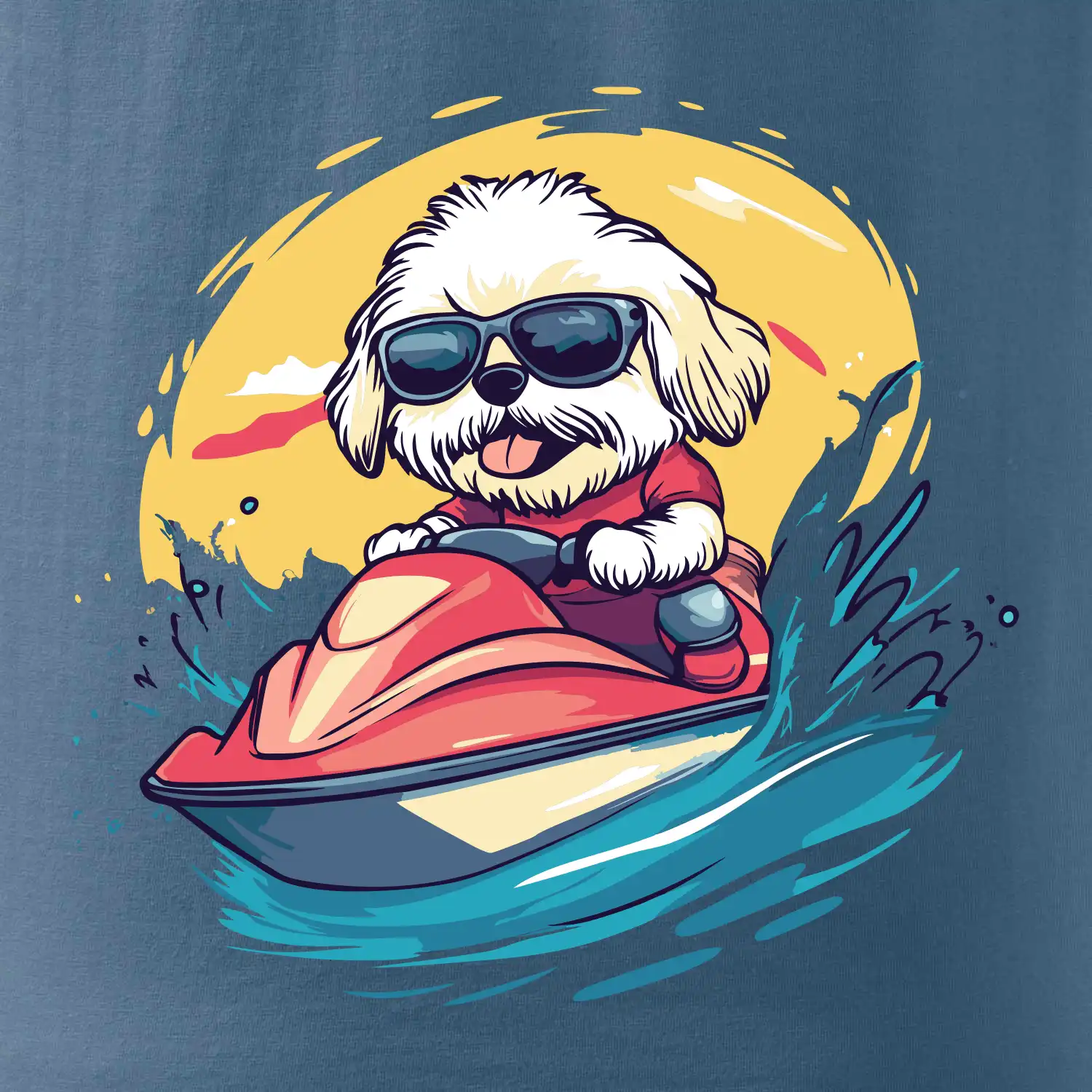 Lhasa Apso na vodním skútru
