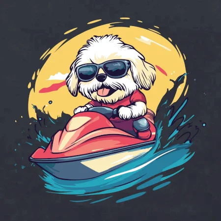 Lhasa Apso na vodním skútru