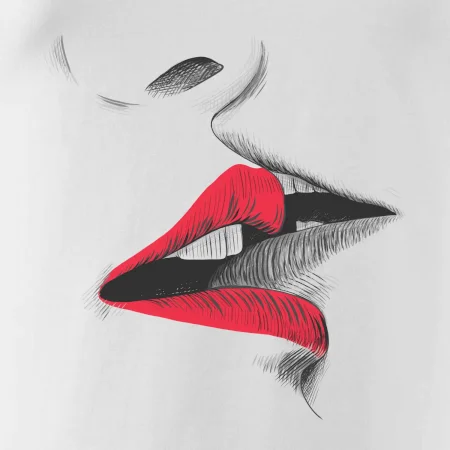 Triko pro zamilované, kde jsou jako hlavní motiv líbající se rty. Polibek na triku je vhodný dárek pro zamilovaný pár třeba k Valentýnu. Pusa vypadá jako opravdová. Kup tohle triko tvé milé a líbání může přeskočit z trika do skutečnosti.