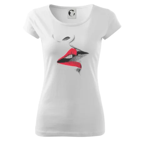 Triko pro zamilované, kde jsou jako hlavní motiv líbající se rty. Polibek na triku je vhodný dárek pro zamilovaný pár třeba k Valentýnu. Pusa vypadá jako opravdová. Kup tohle triko tvé milé a líbání může přeskočit z trika do skutečnosti.