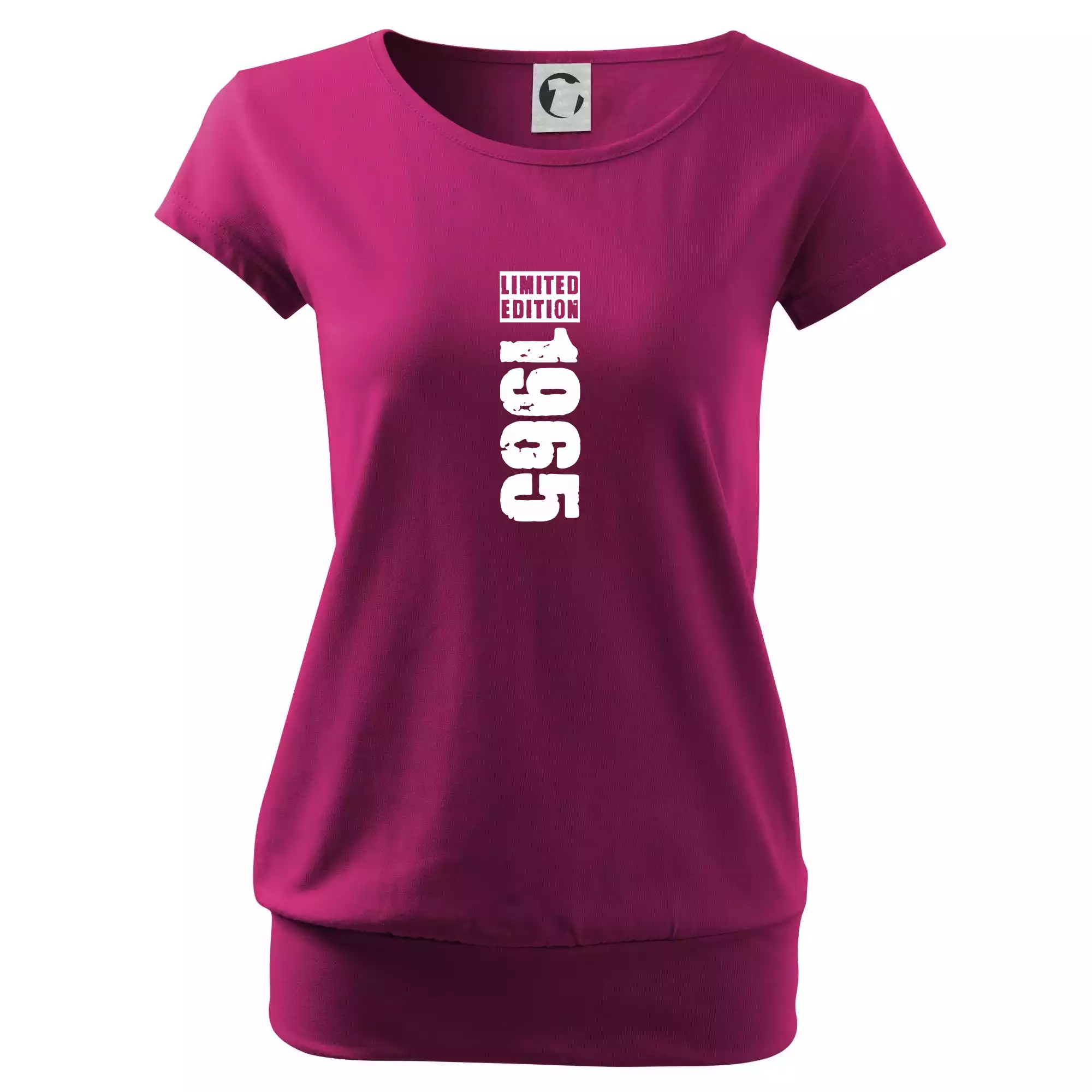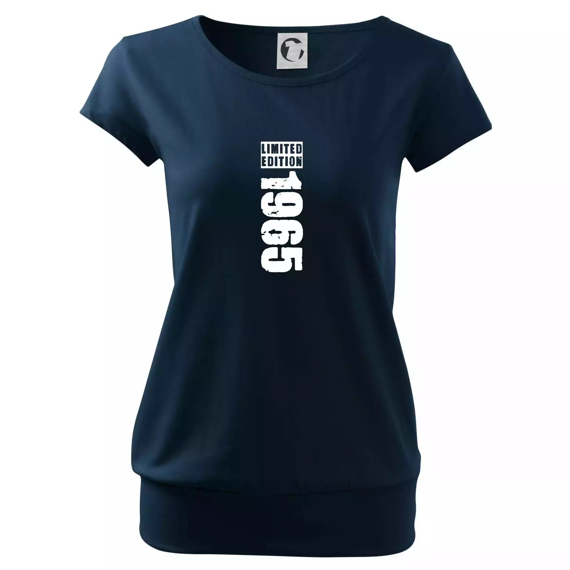Trendové dámské triko s velmi krátkým rukávem, volnějšího střihu, v dolním kraji všité do širokého lemu. Kulatý průkrčník s úzkým lemem ze shodného materiálu.