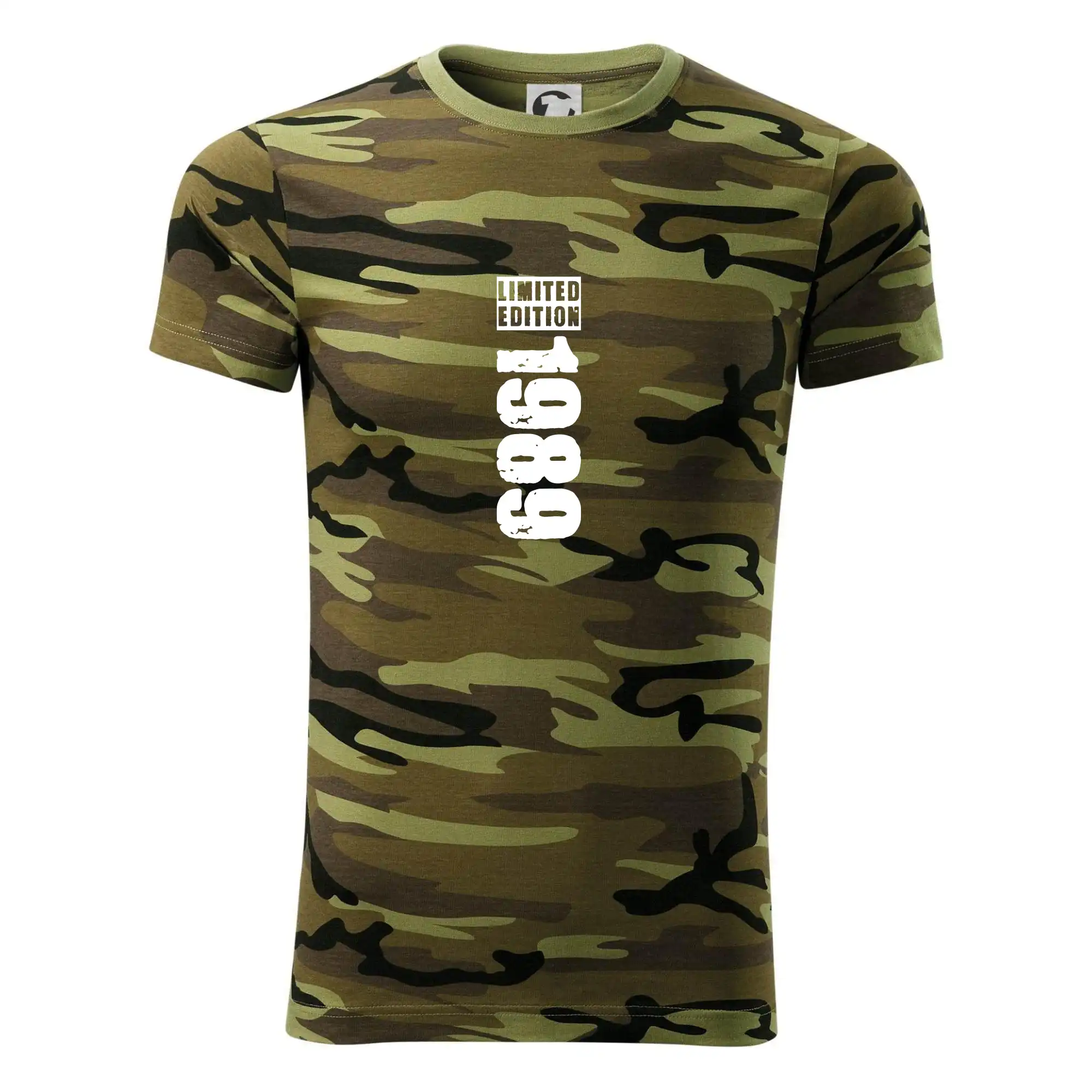 Tričko střední gramáže v barvách camouflage. Střih s bočními švy. Lem průkrčníku ze žebrového úpletu s přídavkem 5 % elastanu. Vnitřní část zadního průkrčníku začištěna páskou v barvě camouflage.