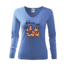 Tolerantnější vypasování dámského střihu, který je vhodný pro všechny typy postavy, ideální délka rukávů a konzervativní výstřih zakončený žebrováním, které skvěle drží tvar.