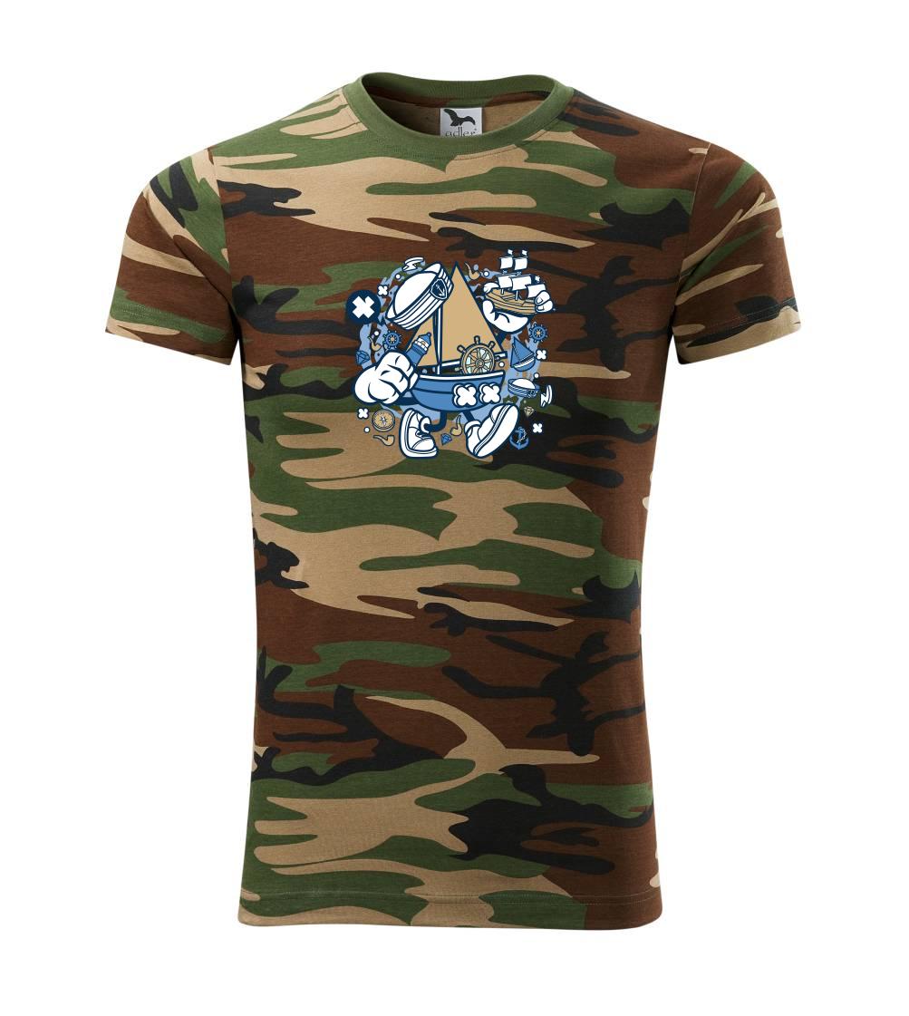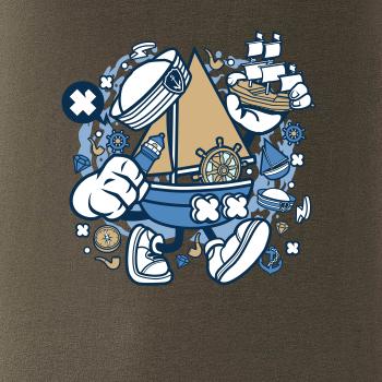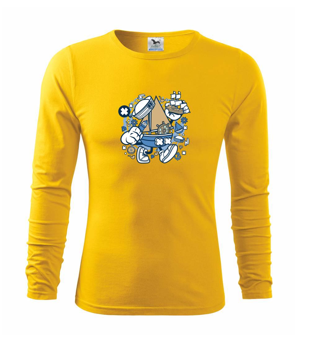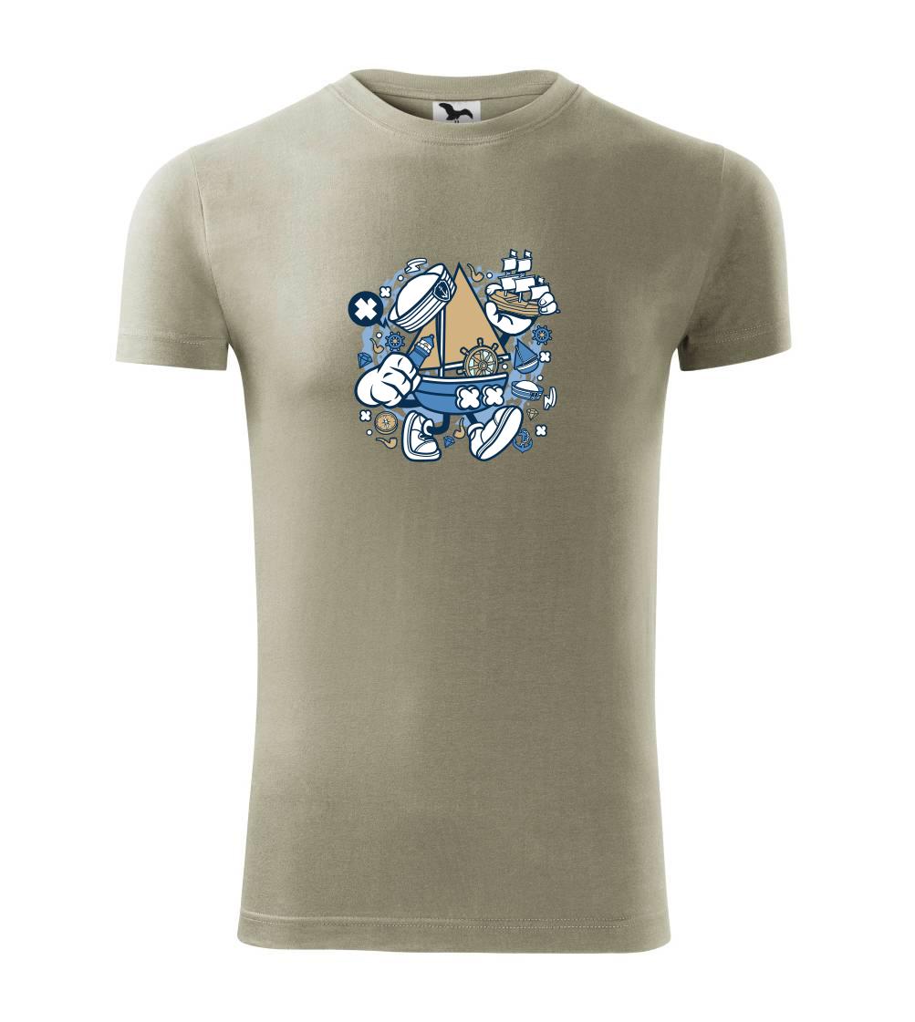 Triko pro námořníka, na kterém je kreslená plachetnice. Loďka v kombinaci s tímhle trikem je ideální parťák. Triko pro vodáka je skvělý dárek na vodu.