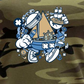 Triko pro námořníka, na kterém je kreslená plachetnice. Loďka v kombinaci s tímhle trikem je ideální parťák. Triko pro vodáka je skvělý dárek na vodu.